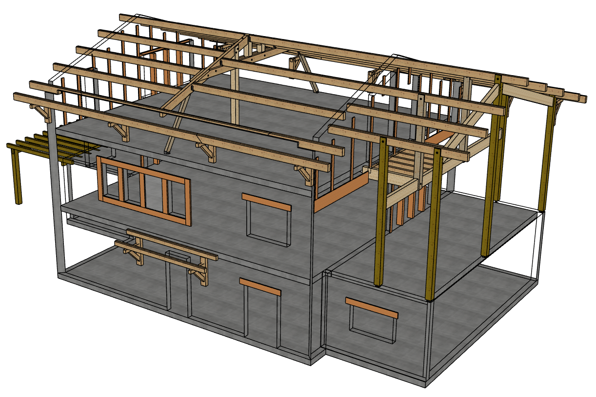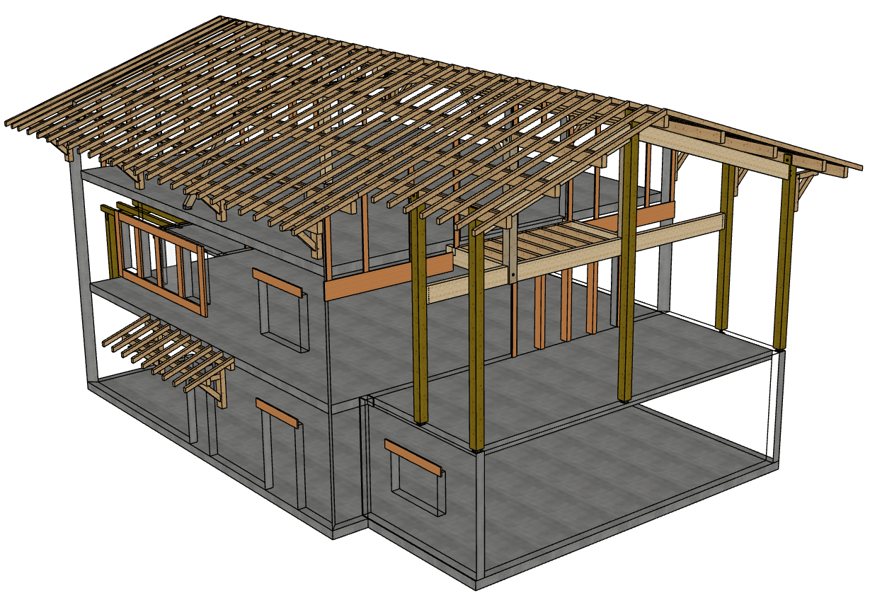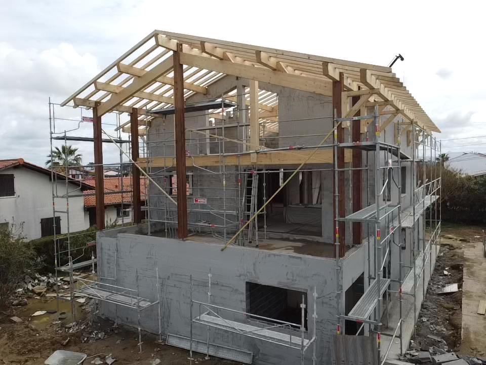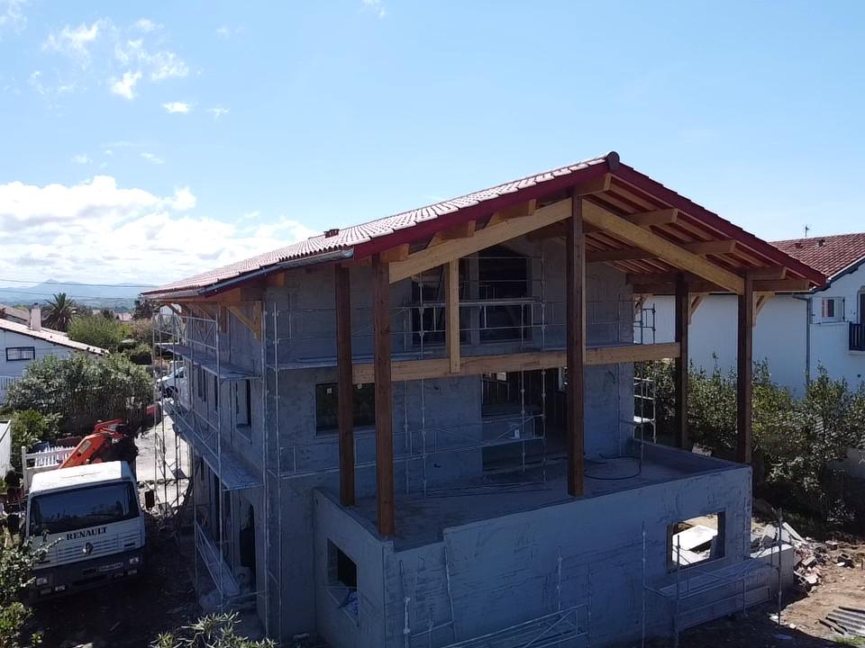 Étude d’une charpente bois pour maison individuelle à Bidart (Pyrénées-Atlantiques) pour l’entreprise Charpente Negueloua. Prestations réalisées : étude des structures bois et des assemblages, réalisation de la note de calcul.